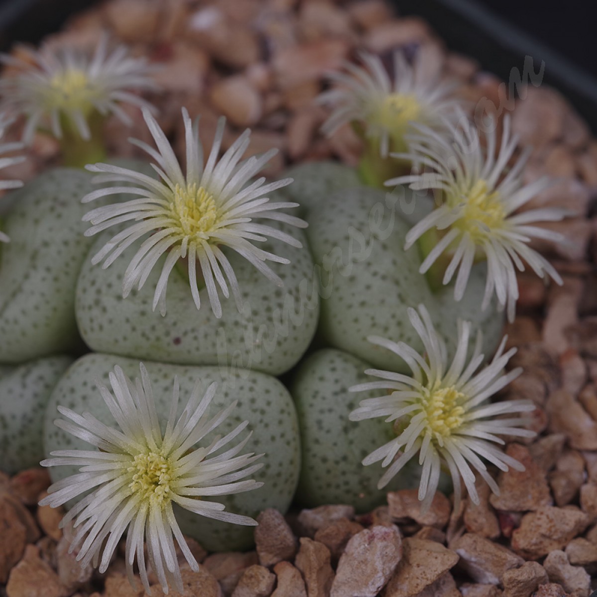 Conophytum truncatum ssp. truncatum var. truncatum, ‘brevitubum’ Sevenweekspoort, pink or white fl (MG1460)